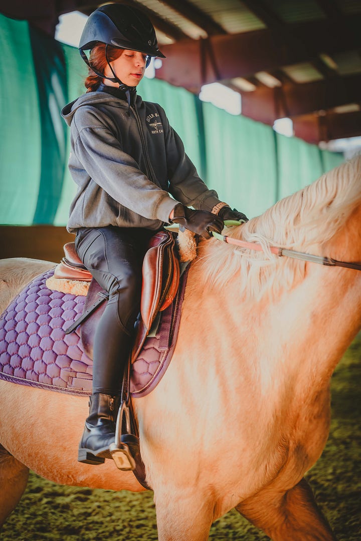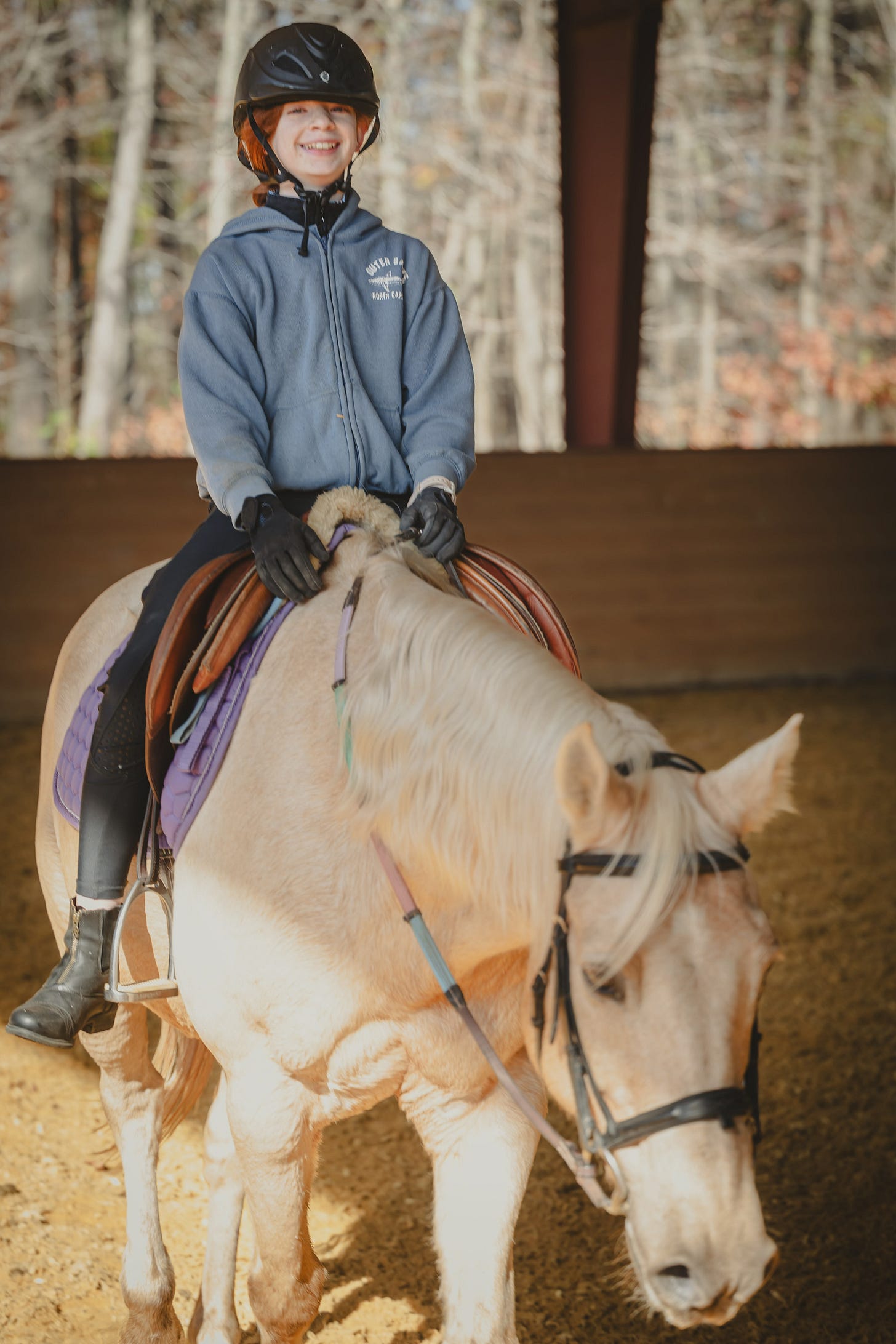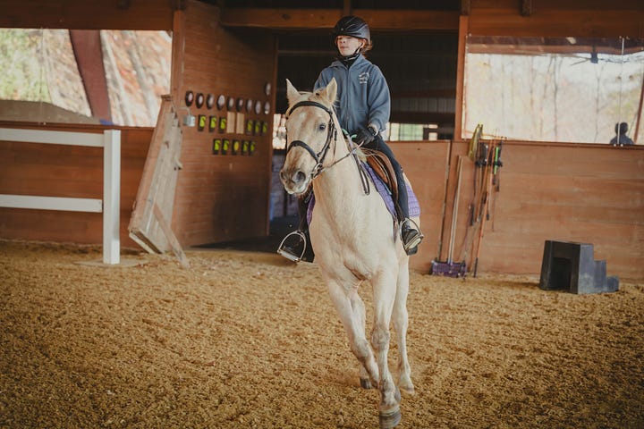 She proved an eager student, quick to learn and unafraid of correction. When she wasn’t riding, she was still at the farm—feeding horses, doing homework by the barn, or studying riders in the arena, soaking in every instruction.