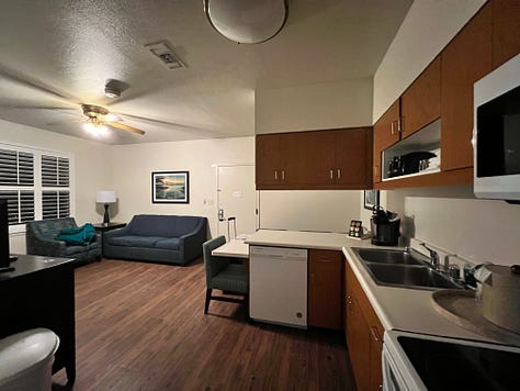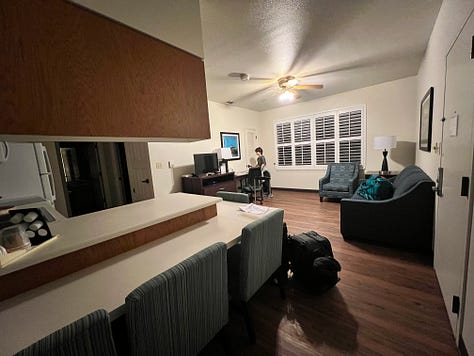Before we walked out the door, I took one last look around. It’s not that it was beautiful—it wasn’t. Beige walls, outdated furniture, utilitarian design. But something about it held the softness of this in-between time. A place we shared stories, made plans, and leaned into the simplicity of being together. I left our key cards on the table and closed the door gently behind us.
