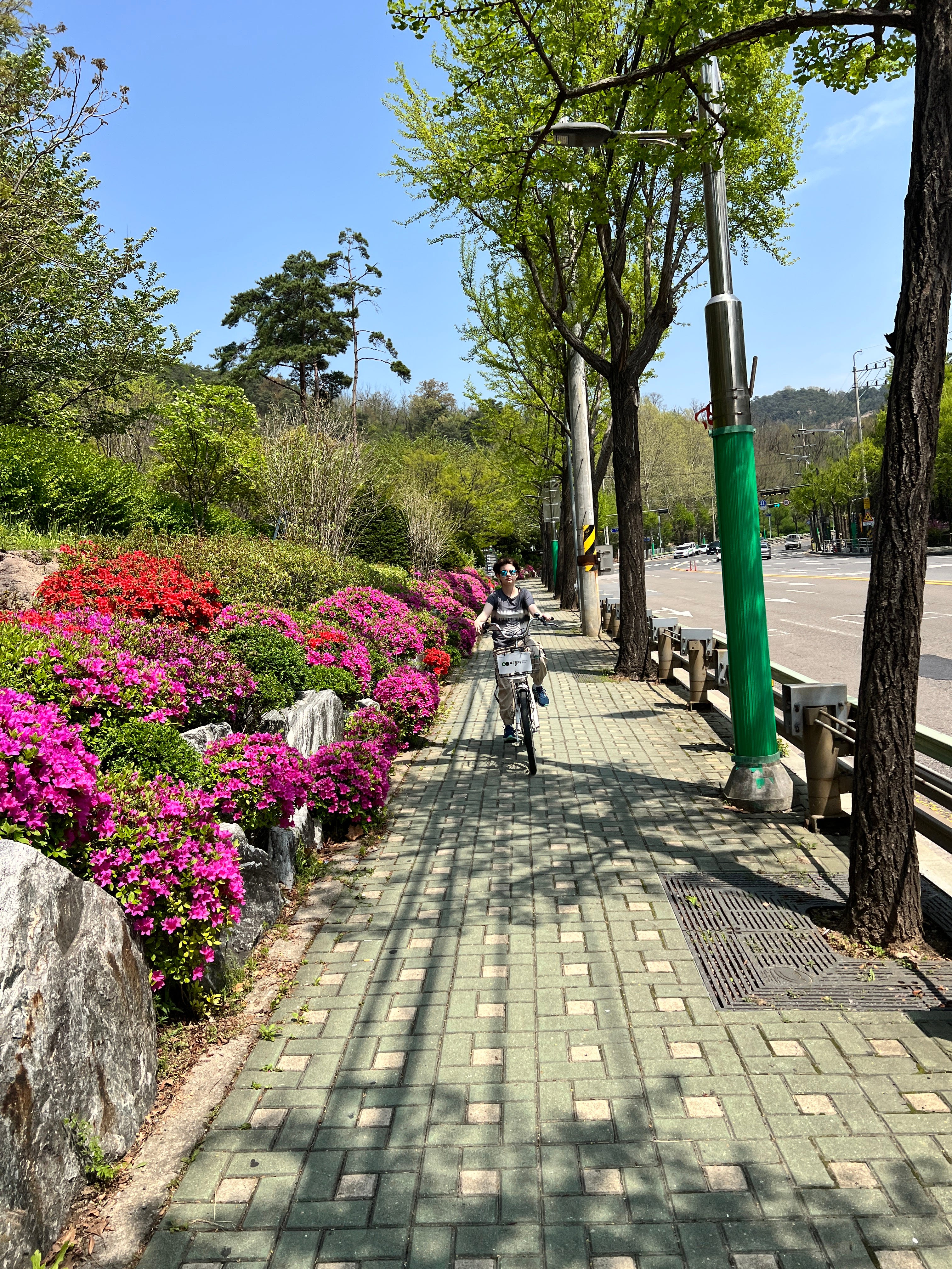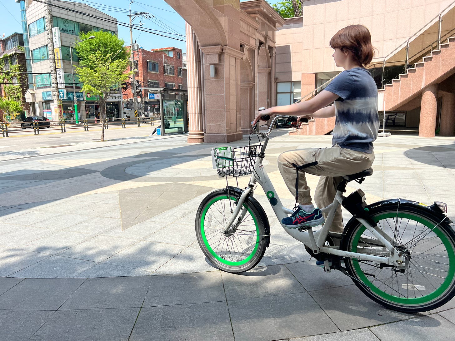 As we walked through the town, we came across a row of rental bikes. She had been asking to rent bikes for days, ever since we first got to Seoul. It had become one of those small but persistent hopes that kept popping up. I’d hesitated each time—partly because it hadn’t really fit the itinerary, but mostly because I wasn’t sure how well she remembered how to ride. It had been years since she last sat on a bike. Still, she insisted, asking with a youthful zest for adventure that I found hard to resist.